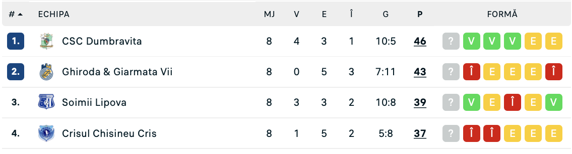 Pentru prima oară în ultimele patru sezoane, Șoimii Lipova nu termină campionatul Ligii a III-a pe unul dintre primele două locuri. Mai mult, în ultima rundă, formația de pe Mureș își apără și poziția a treia de atacul conjudețenei Crișul și o va face împotriva "bestiei nera" din această primăvară. Dumbrăvița a câștigat de două ori pe „Motorul”, 3-0 în sezonul regulat și 1-0 în play-off și odată acasă, 2-0 tot în play-off, iar acum are nevoie de măcar un egal pentru a termina seria a 8-a în fața Ghirodei și a nu da piept din prima la baraj, contra Reșiței lui Dan Alexa. Așadar, miza există şi aici, cu lipovanii având şi ei dorinţa de a încheia cu un rezultat pozitiv campionatul.